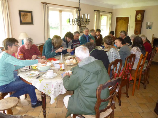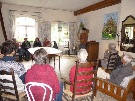L'exposé de Fabrice relatif à la synergie des abeilles avec leur milieu, dont le verger, puis l'auberge espagnole lors de la pause et, dès le début de l'activité, l'observation des arbres à